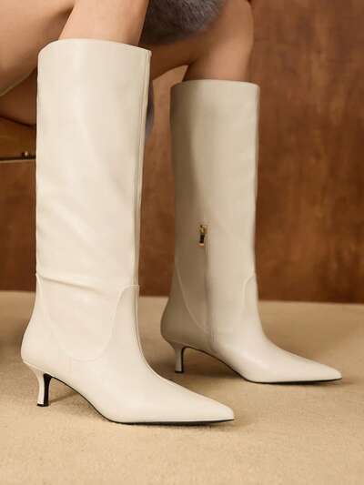 2024 여성용 새로운 뾰족한 토우 스트레이트 샤프트 하이힐 니하이 부츠-72%