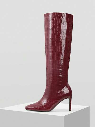주름진 페이턴트 가죽 니하이 라이딩 부츠, 슬림한 톨 샤프트 스틸레토 힐 여성 부츠-61%