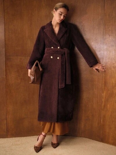 여성용 벨트 장식 롱 인조 모피 코트, 가을/겨울-59%