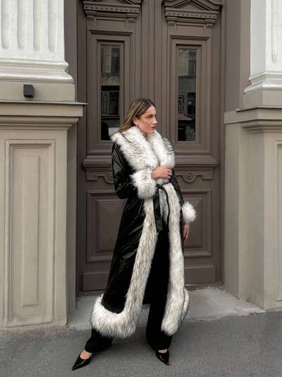 울 대비 인조 모피 칼라 롱 코트, 가을/겨울-21%