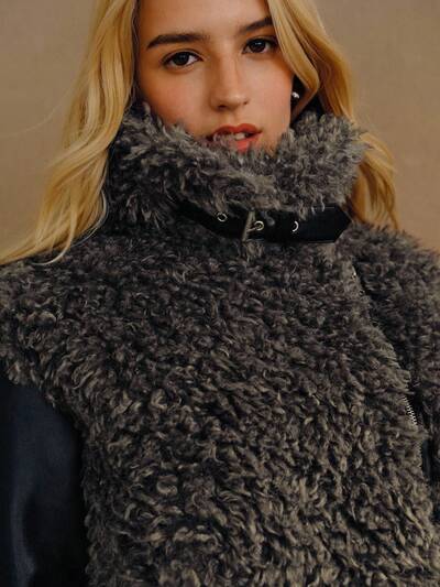 우아한 인조 모피 칼라 패치워크 숏 재킷, 가을/겨울-21%