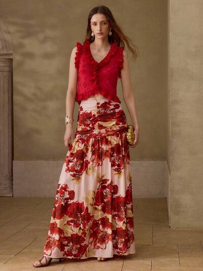 여성 린넨 프린트 A라인 스커트, 봄/여름-23%