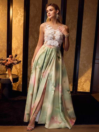 MOTF Soiréza WOMEN'S KNIT STAND COLLAR LONG SLEEVE FLOOR-LENGTH EVENING GOWN WITH CUT-OUT SHOULDERS & BEADED EMBROIDERED NECKLINE/SLEEVES , SLIM-FIT FISH TAIL SKIRT FOR ELEGANT PARTIES & RED CARPET EVENTS