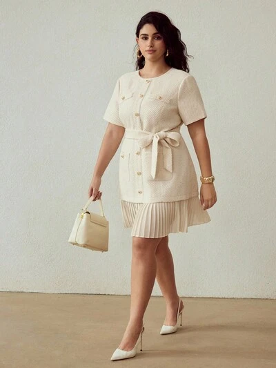 PLUS SIZE WOMEN'S PLEATED WAIST MIDI DRESS, SPRING/SUMMER-8%