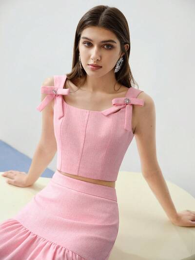 MOTF STUDIO BOW DECOR ZIPPER BACK SLEEVELESS BLOUSE,VALENTINE'S DAY,SPRING/SUMMER-49%