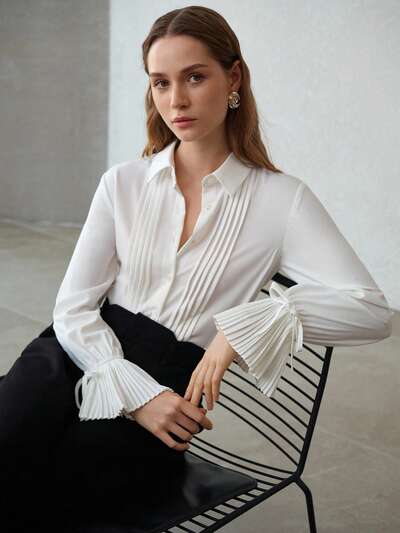 WOMEN'S SOLID COLOR PLEATED CUFF CASUAL BLOUSE-56%