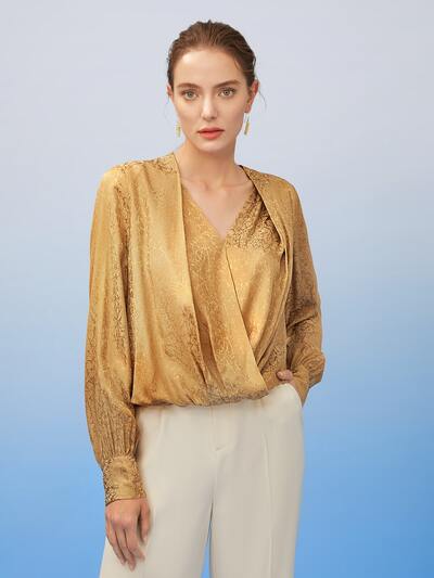 SILK JACQUARD WRAP BLOUSE-32%