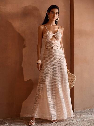 CUTOUT CHEVRON PATTERN COVER UP DRESS-46%