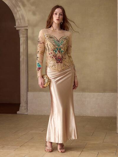 WOMEN'S BUTTERFLY SEQUIN EMBROIDERED SHEER MESH TOP-49%