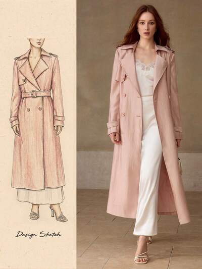 WOMEN'S FASHIONABLE COMMUTER SOLID COLOR DOUBLE-BREASTED BELTED LONG TRENCH COAT
