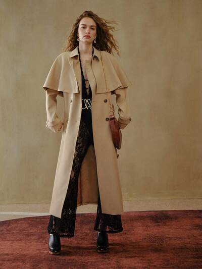 DOUBLE BREASTED PLEATED TRENCH COAT-25%