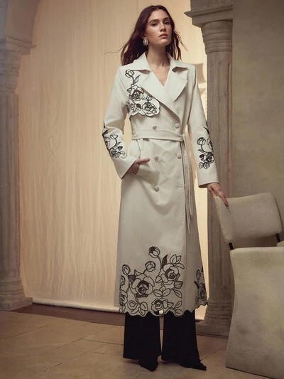 FLORAL EMBROIDERY DOUBLE BREASTED TRENCH COAT,SPRING/SUMMER-64%