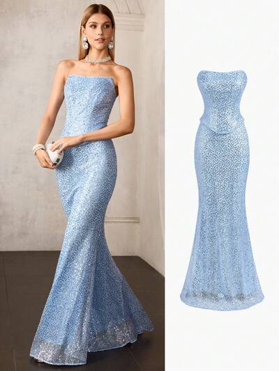 MOTF Soiréza Damski top z haftowanymi cekinami i spódnicą z dołem w kształcie syreny, odpowiedni na okazje wiosenne/letnie-61%