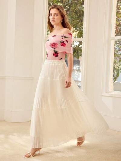 SPÓDNICA W KWIATOWY WZÓR O KROJU A-25%