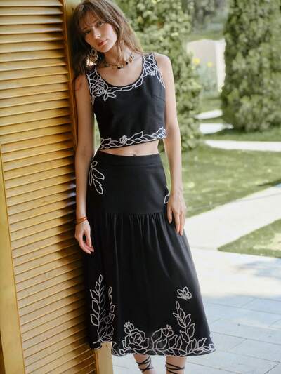 MOTF STUDIO SPÓDNICA Z LNU Z HAFTEM NA ZAMEK-25%