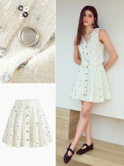 Spódnica boczna z cekinami i zamkiem błyskawicznym-25%
