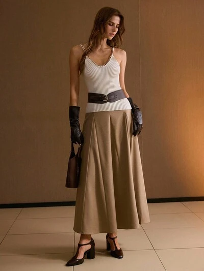 SPÓDNICA ZE SKÓRY PU Z MARSZCZONYM PRZEDNIEM I ROZCIĘTYM DOŁEM-57%