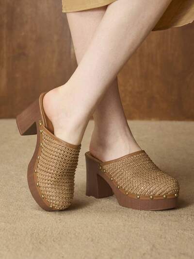 Modne damskie czółenka typu mule ze skóry poliuretanowej z ozdobnymi nitami i szpiczastym noskiem