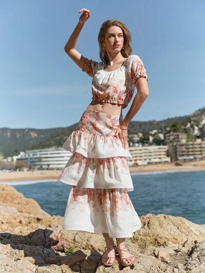 SUKIENKA Z ODKRYTYMI RAMIONAMI I NADRUKIEM KWIATOWYM-54%