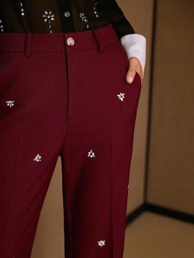 Spodnie garniturowe z rozszerzanymi nogawkami i kryształkami-60%