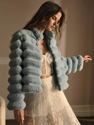 GŁADKI PŁASZCZ ZE SZTUCZNEGO FUTRA Z WYSOKIM KOŁNIERZEM I ZAMKIEM ZAPIĘTYM NA PLISĘ-21%