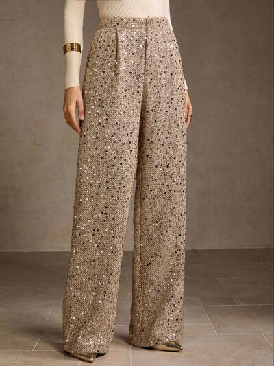 Spodnie garniturowe z cekinami i ukośnymi kieszeniami-65%