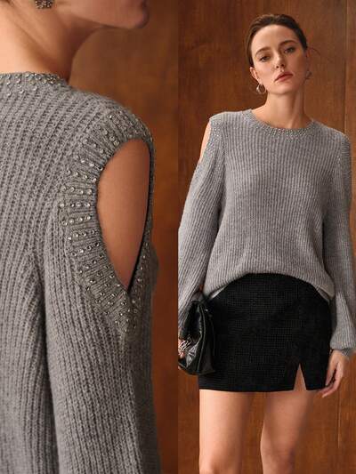 OVERSIZEROWY, PUSZYSTY SWETER Z DZIANINY Z DEKORACJĄ GUZIKÓW, JESIEŃ/ZIMA-63%