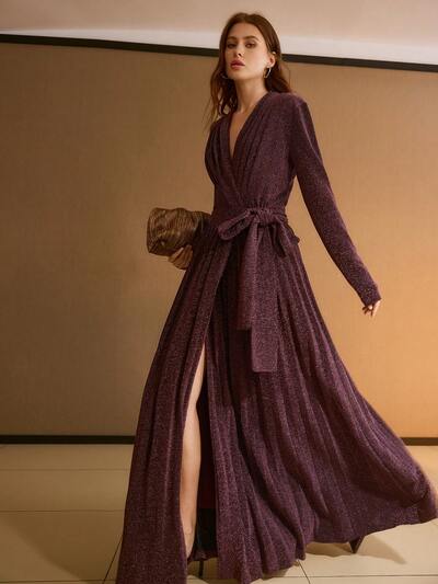 VESTIDO BRILHANTE FRENCH DREAM, VESTIDO PLISSADO EVASÊ COM AMARRAÇÃO LATERAL DE LUXO PARA MULHERES-23%