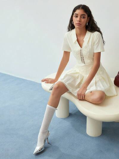 MOTF STUDIO VESTIDO PREGUEADO DE RENDA CONTRASTANTE-23%