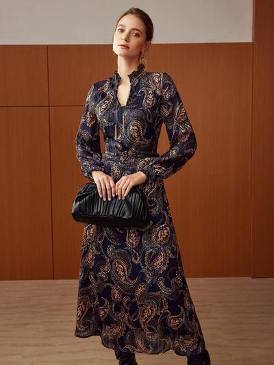 VESTIDO MIDI COM BABADO DE ESTAMPA PAISLEY SEM CINTO-23%
