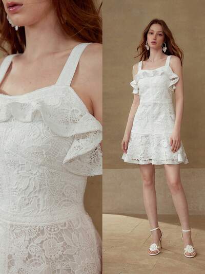 VESTIDO DE RENDA CONTRASTANTE COM BABADO-34%