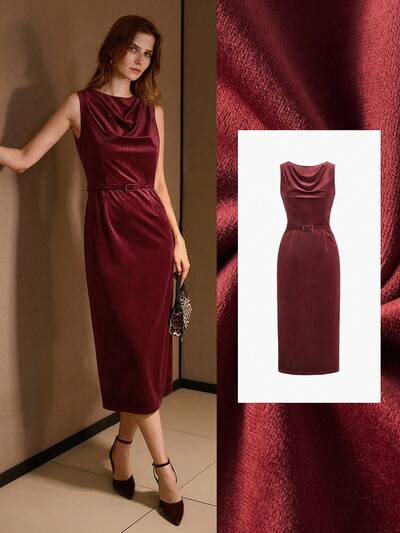 VESTIDO ELEGANTE AJUSTADO DE VELUDO FEMININO, OUTONO/INVERNO-34%