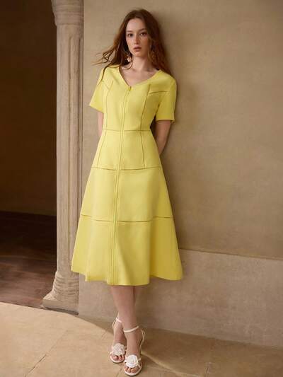 VESTIDO SÓLIDO COM ZÍPER NAS COSTAS E BAINHA PLISSADA-34%