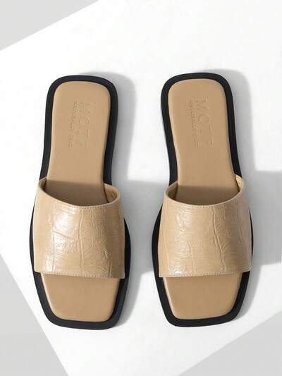 Sandálias Casuais Leves e Confortáveis, Estilo Simples e Versátil, Couro PU com Estampa de Pedra, Bico Quadrado Aberto, Sola Plana, Ideal para Praia