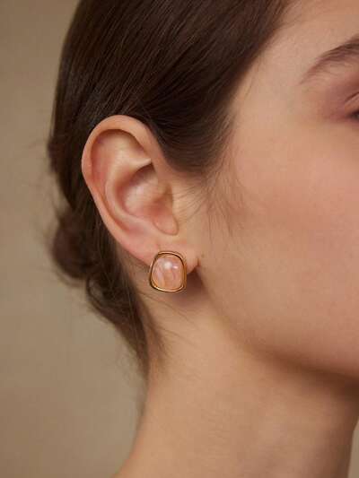 BRINCOS DE BOTÃO COM RESINA ROSA FOLHEADA A OURO 18K