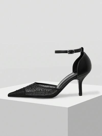 SAPATOS DE SALTO ALTO COM TIRA NO TORNOZELO E PONTA EM STRASS, PARA O DIA DOS NAMORADOS, SAPATOS DE PRIMAVERA