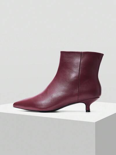 BOTAS DE TORNOZELO DE SALTO BAIXO BICO FINO DE COURO PU MINIMALISTA PARA MULHERES