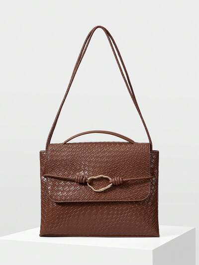 BOLSA DE OMBRO ELEGANTE CASUAL DA MODA FEMININA NA COR MARROM COM TEXTURA ESTAMPADA TRANÇADA, GRANDE CAPACIDADE, PARA TRABALHO, COMPRAS, USO DIÁRIO