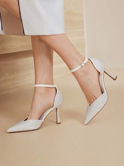 STILETOS DE BICO COM TIRA NO TORNOZELO E STRASS-15%