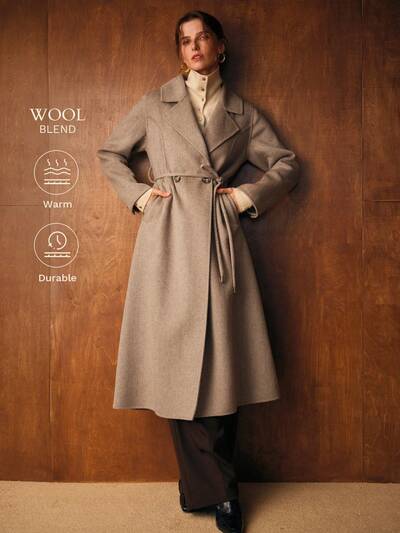 CASACO SOBRETUDO COM CINTO DE LÃ PARA OUTONO E INVERNO-26%