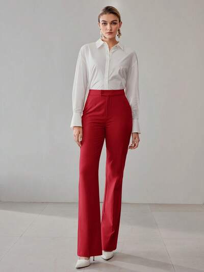 CALÇA DE TERNO DE PERNA LARGA COM PREGAS DOBRADAS-21%