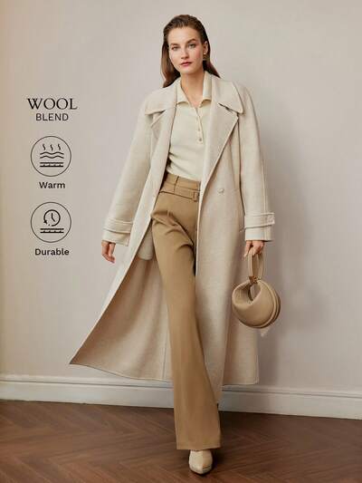 ZEYLAH Casaco Trench com Colarinho Lapela, Dupla Fileira de Botões, Fivela e Cinto-25%