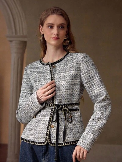 BLAZER ELEGANTE MINIMALISTA DE LINHO COM DESIGN DE CINTO DUPLO, PRIMAVERA/VERÃO-40%