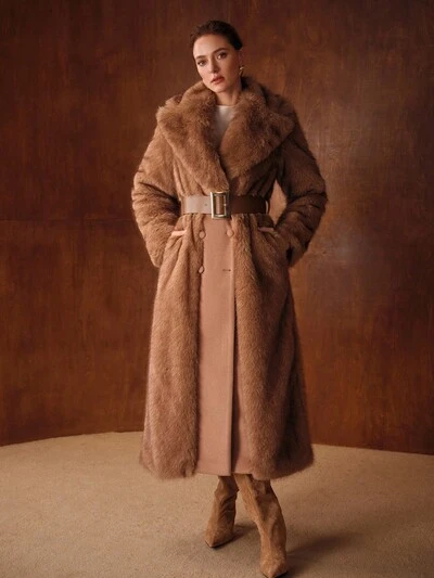 CASACO SOBRETUDO CINTO COM GOLA FELPUDA CONTRASTANTE-40%