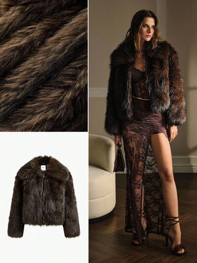 CASACO FALSO DE PELE COM BLOCO DE COR E CACHOEIRA PARA OUTONO E INVERNO-25%