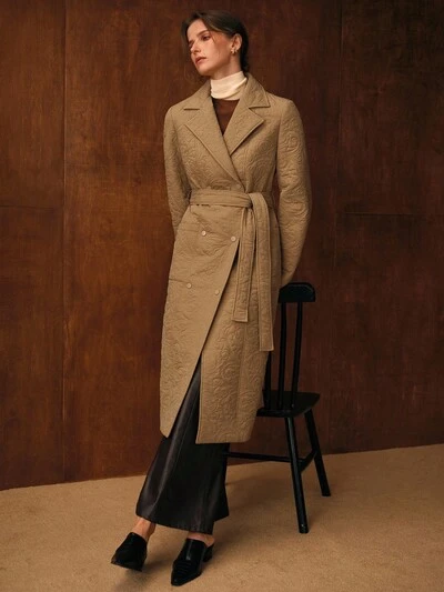 CASACO COM CINTO DE GOLA DE LAPELA DE PEITO DUPLO-40%