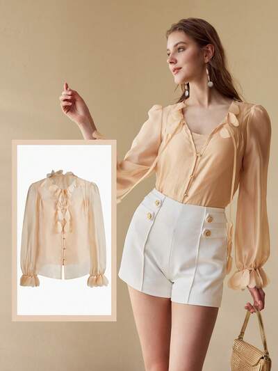 RUFFLE TRIM BUTTON FRONT TOP-42%